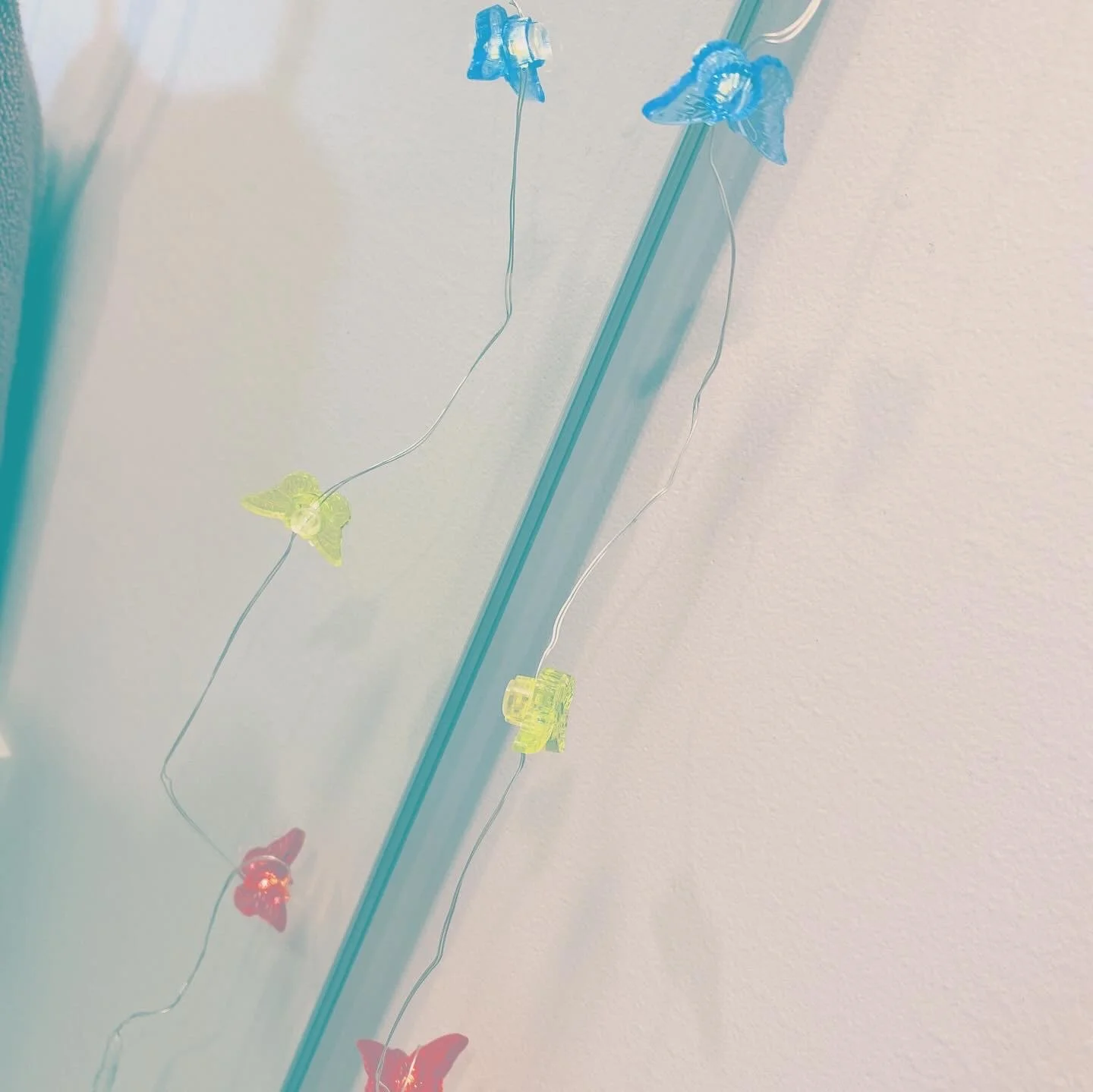 I’m currently obsessed with my butterfly string lights. They add such a soft, whimsical glow in the evenings — it’s so enchanting.