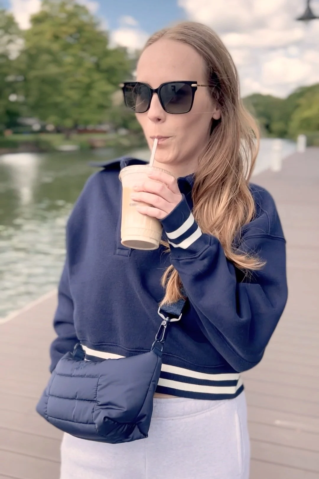 I love this new fleece polo sweatshirt. It is so cozy and sporty. This is the perfect outfit for a cool Fall day.
