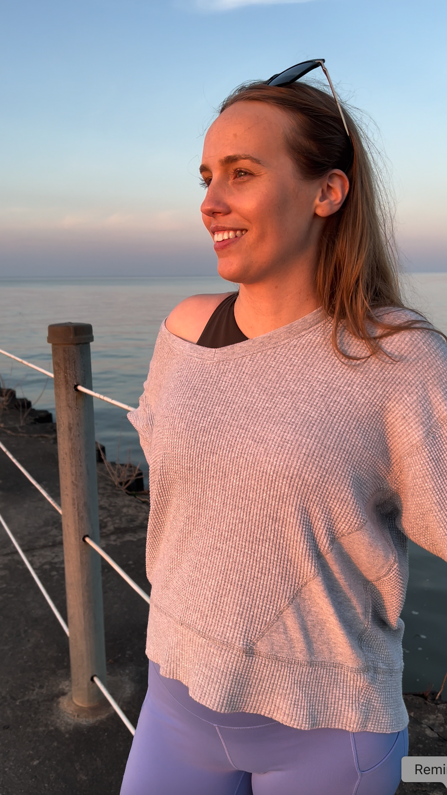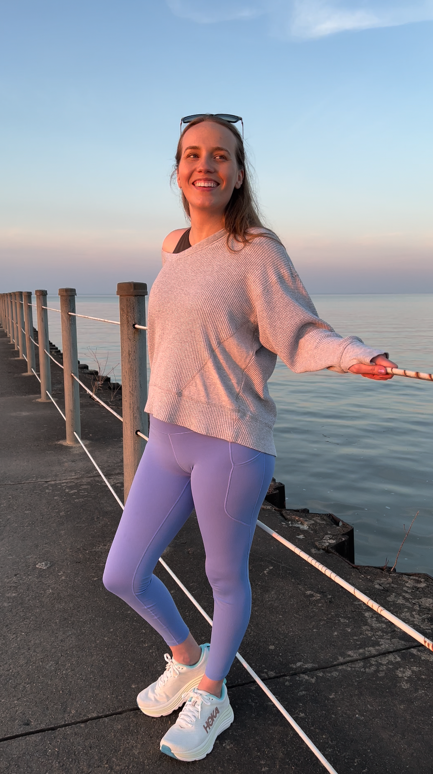 I always love to be comfy. Loving this waffle shirt by Offline by Aerie and these leggings by Nike. It was a beautiful sunset along the pier the other night! ☀️