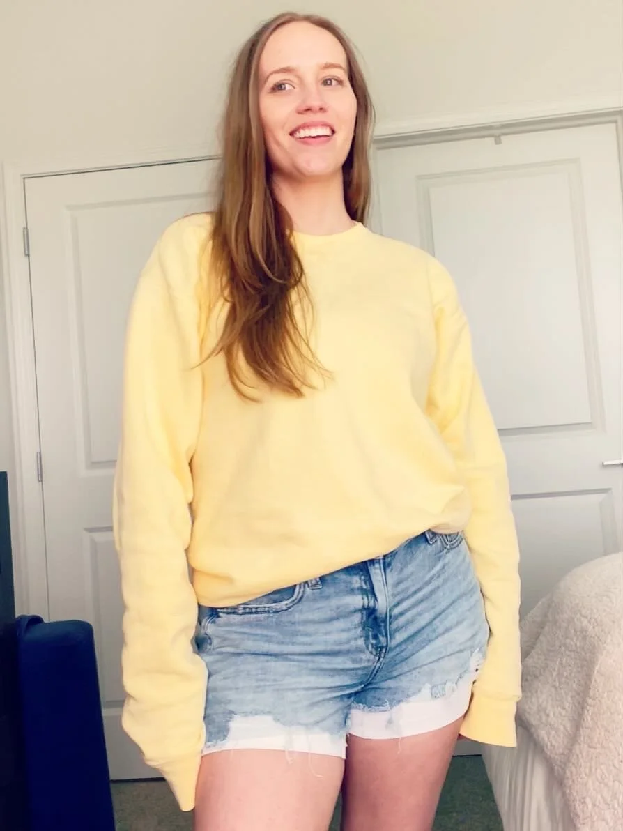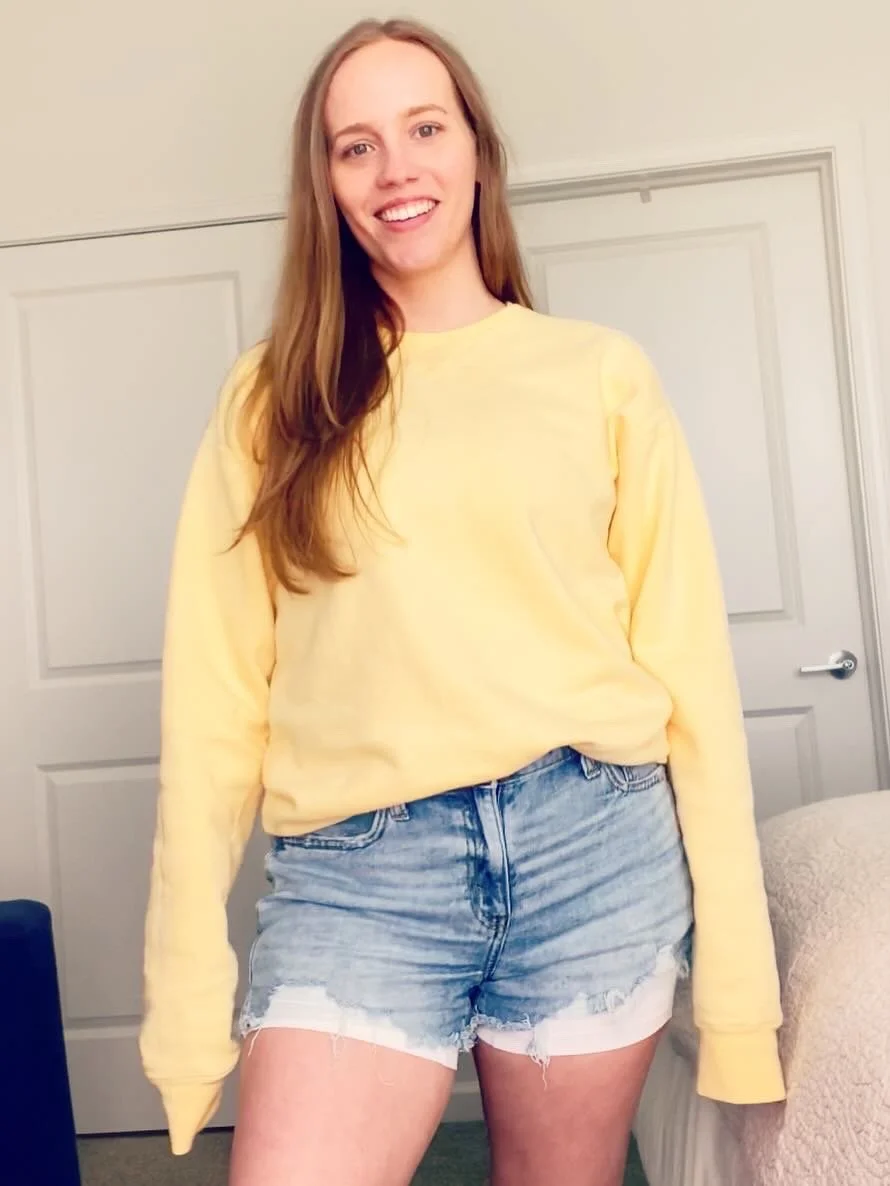 There’s something undeniably comforting about a buttery yellow hue—soft, mellow, and warm, like sunshine. It’s the kind of shade that feels instantly soothing, especially when worn on breezy summer evenings or those unexpected chilly mornings. A butter yellow sweatshirt is the perfect companion: cozy without feeling heavy, vibrant without being loud. Paired with your favorite shorts, it’s an effortless outfit that bridges the gap between sun-drenched afternoons and cooler twilight hours 🌙 ✨
