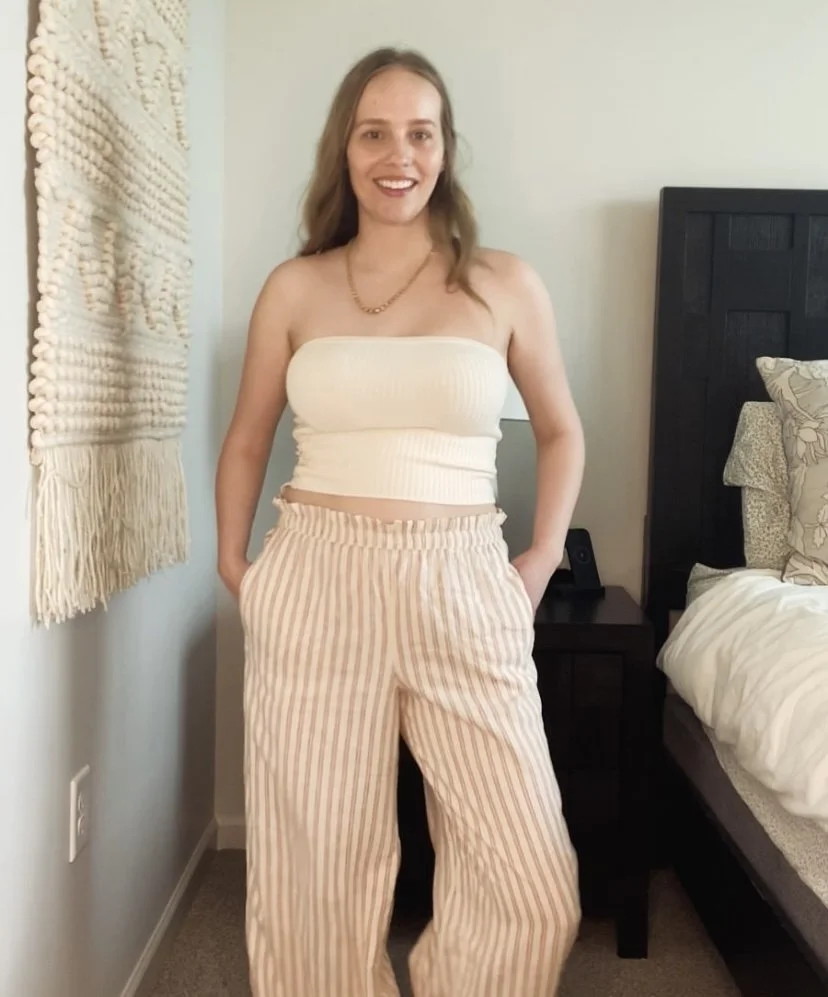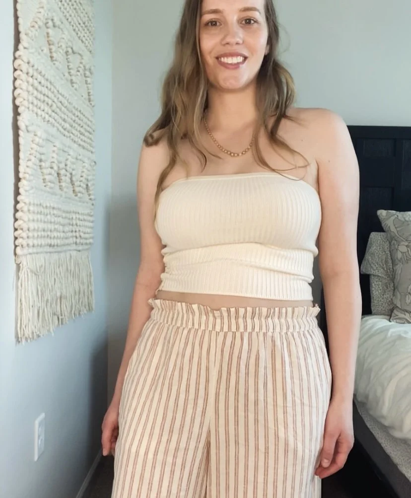 Comfort Meets Style: You want to feel beautiful, but not like you're trying too hard. The tube top hugs your curves without constriction, while the linen trousers let your legs breathe.