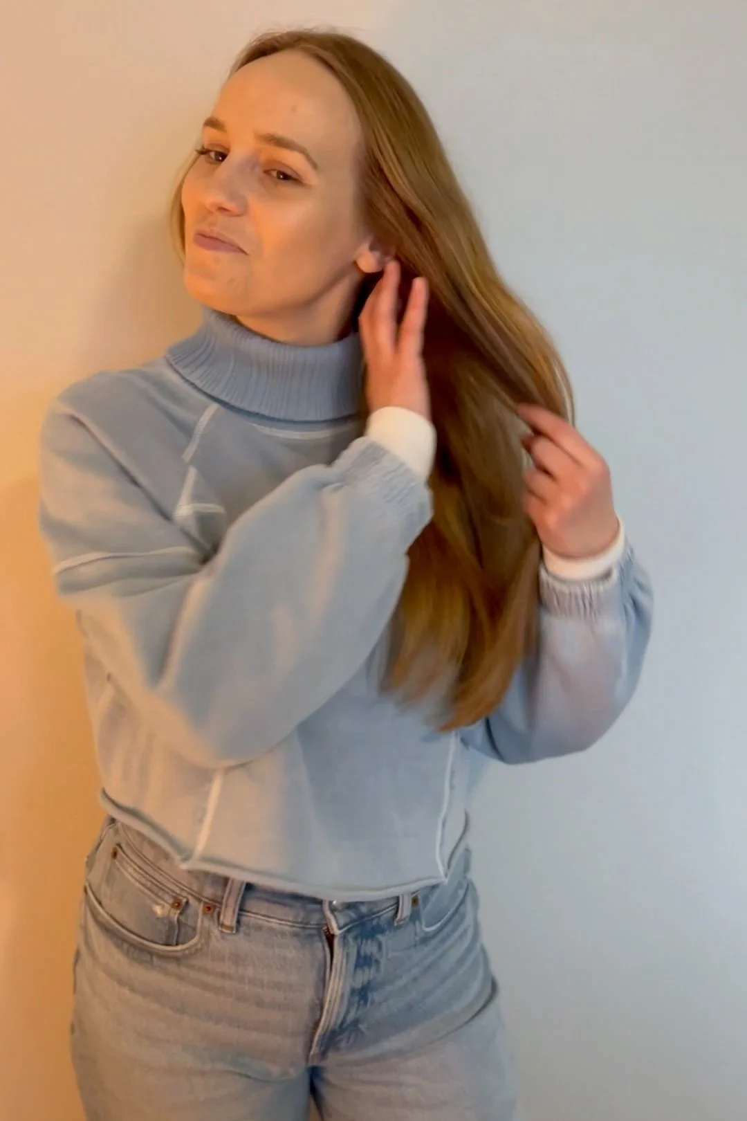 Cropped Sweatshirt Apr 11 Written By Sneaker Girl 29 I’m wearing a sweatshirt by Aerie. My jeans are by Madewell.Turtleneck sweatshirt by Aerie | Jeans by Madewell Sneaker Girl 29